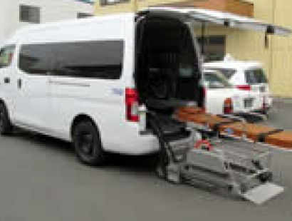 ご自宅から病院の受付まで、ヘルパー乗務員がサポートします。(小型タクシーやストレッチャー(寝台)・車椅子用車輌での送迎)