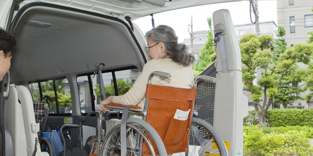 ヘルパー資格をもった乗務員が、通院などの外出をやさしくサポートします。